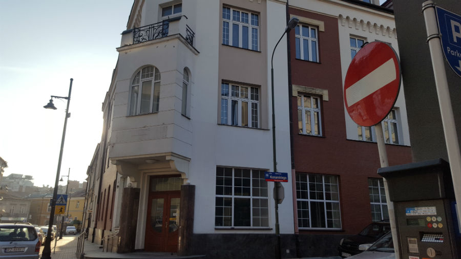 Jak można przeczytać w projekcie budowlanym, nieruchomość zakupiony przez starostwo znajduje się na skrzyżowaniu ul. Bernardyńskiej i ul. Stanisława Konarskiego. Inwestycja usytuowana jest w dwóch budynkach – nr 7 na rogu ulicy Bernardyńskiej i St. Konarskiego, oraz we fragmencie budynku nr 3 przy ul. Konarskiego. Ta ponad 100-letnia kamienica została wybudowana przed 1903 rokiem. Budynek przebudowano w latach 60-tych na potrzeby banku, zachowując funkcje mieszkalne na II piętrze i poddaszu. W 1997 roku obiekt przeszedł modernizacje wszystkich kondygnacji na potrzeby banku – wykonano wtedy m.in. żelbetowy skarbiec z przedsionkiem i osobnym wejściem z parteru oraz windą towarową.
