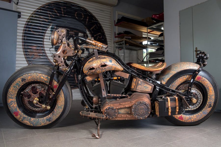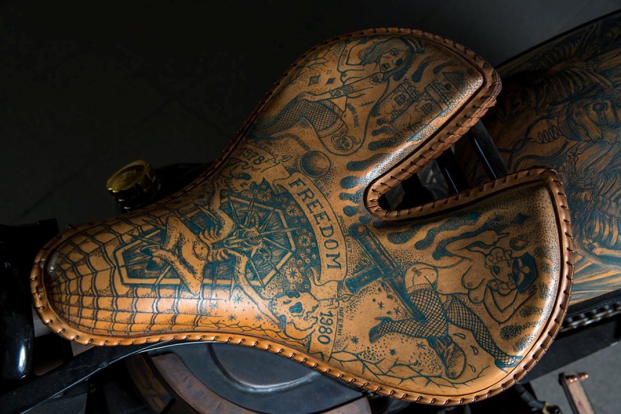 wywiadzie dla magazynu VIP Biznes&Styl opowiadał, że na pomysł wytatuowanego motocykla wpadł wiele lat temu. Wykonywał tatuaże samodzielnie zrobioną maszynką – struny od gitary, silniczek od walkmana, igła, do tego własne pomysły. – Siedząc w szkole z internatem, ma się nieograniczoną ilość czasu i brak pieniędzy, więc wymyśliłem sobie taki sposób na dorabianie, bo zawsze umiałem sobie dawać radę – opowiada. – Tatuowałem znajomych. Świetna szkoła życia. Z kolegą uczyliśmy się tatuować na prosiakach. Karmiliśmy je wiśniami z domowego wina, żeby były spokojne. Rano na podwórko wybiegało stado wytatuowane w płomienie, czachy itp. dzieła. Przez te prosiaki pomyślałem o wytatuowanej skórze na motocyklu. Przez kilkanaście lat śledziłem motocyklowe media, czekając, kiedy ktoś to zrobi. Ale jakoś nikt na to nie wpadł.