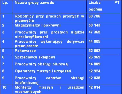 Tab. 1. Zatrudnienie wg grup zawodów w agencjach pracy tymczasowej