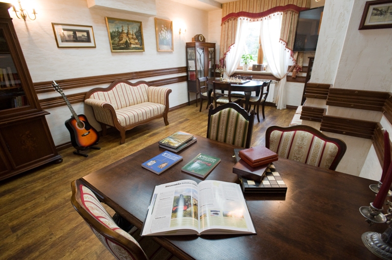 pokoju relaksu połączonego z biblioteką, w którym można pograć w szachy, zaprosić partnerów do brydża, czy też oddać się ulubionej lekturze