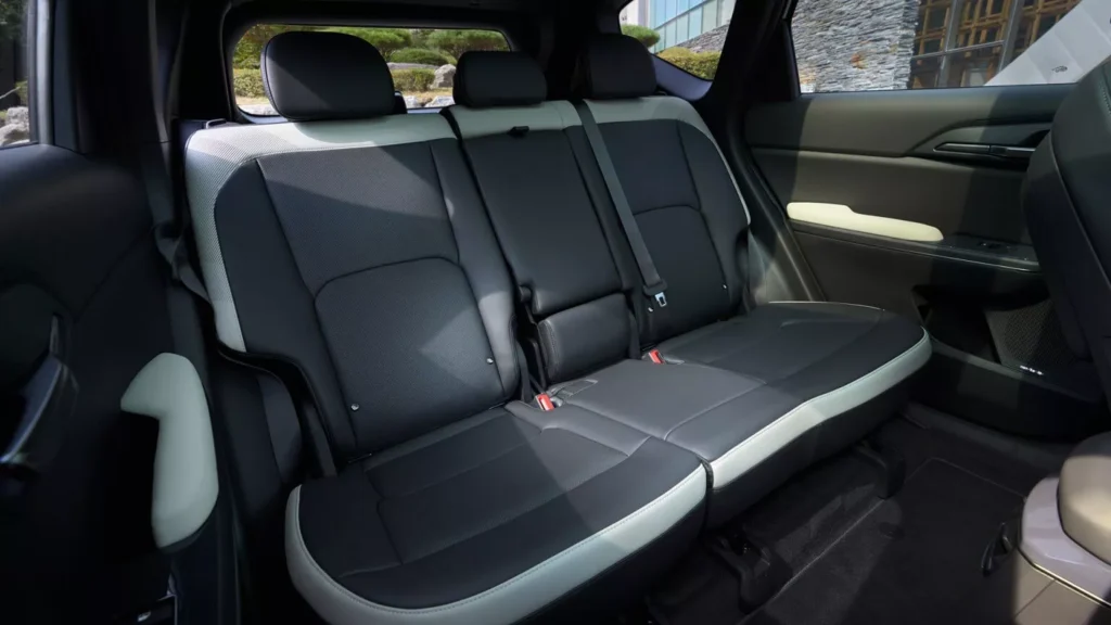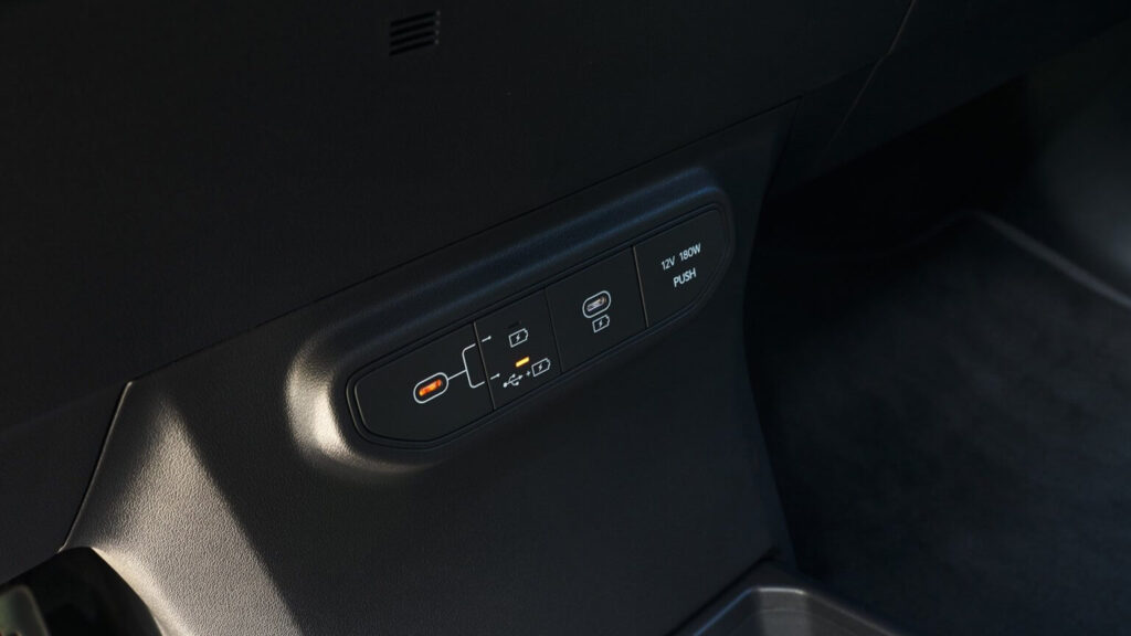Tak, czy siak, gabarytowo Kia EV5 reprezentuje Segment C-SUV, czyli kompaktowych SUV-ów. Ale rozmiarem wnętrza celuje co najmniej w segment wyżej. Widać to w szczególności na tylnej kanapie, gdzie przestrzeni jest zauważalnie więcej, niż w Sportage’u. Szczególnie na nogi. Do tego pasażerowie mogą regulować kąt pochylenia oparć, a podłoga jest całkowicie płaska, więc nawet pasażer siedzący pośrodku kanapy będzie miała wygodnie. Komfort poprawia trzecia strefa klimatyzacji (standard od wersji Earth), a funkcjonalność – wysuwana z konsoli środkowej głęboka szuflada, która pomieści mnóstwo szpargałów i dodatkowo ma półeczkę, na której można np. trzymać telefon. Generalnie EV5 troszczy się o osoby podróżujące na tylnej kanapie bardziej, niż jakikolwiek inny kompaktowy SUV.