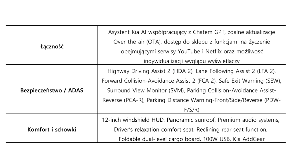 W 2026 roku do gamy dołączy wersja z hybrydowym układem napędowym, zapewniającym jeszcze większe wydajność i użyteczność na co dzień. Oprócz funkcji Vehicle-to-Load (V2L), która umożliwia zasilanie urządzeń zewnętrznych, w wersji hybrydowej zadebiutuje system Smart Regenerative Braking 3.0 – technologia nowej generacji, która automatycznie dostosowuje siłę rekuperacji do natężenia ruchu oraz danych z nawigacji, optymalizując odzysk energii.