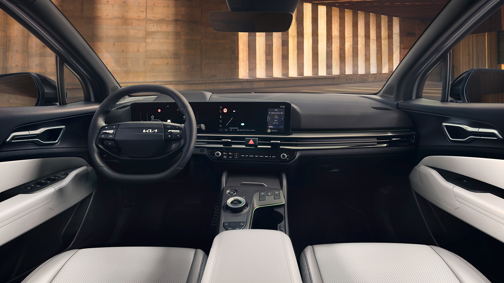 Wnętrze Sportage Black Edition również wyróżnia się na tle pozostałych wersji i oferuje wyświetlacz, na który składają się cyfrowe wskaźniki o przekątnej 12,3 cala oraz 12,3-calowy ekran systemu multimedialnego, czarną podsufitkę oraz oświetlenie nastrojowe. Do wyboru są dwie tapicerki skórzano‑zamszowe: czarna oraz nowa, jasna w tonacji Misty Grey.