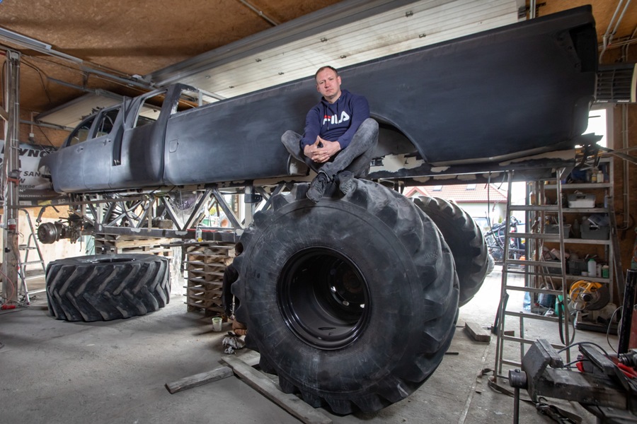 – Pasją do motoryzacji zaraziłem się od dziadka, z którym spędzałem bardzo dużo czasu w garażu. Jako jedyny w okolicy konstruował i naprawiał ciągniki oraz maszyny rolnicze. Był złotą rączką, a ja odziedziczyłem to po nim. Swój pierwszy samochodzik zbudowałem w wieku 8 lat. Potem pojawiały się kolejne marzenia, wizje i projekty, aż w końcu trafiło na największego monstera na świecie – opowiada Przemek Kołtun. – Pomaga przy nim wiele osób – moja rodzina, przyjaciele i znajomi. Chociaż zdarzają się momenty załamania, nie rezygnuję. Gdy wstaję rano, otwieram garaż i patrzę na monstera, cała reszta się nie liczy.