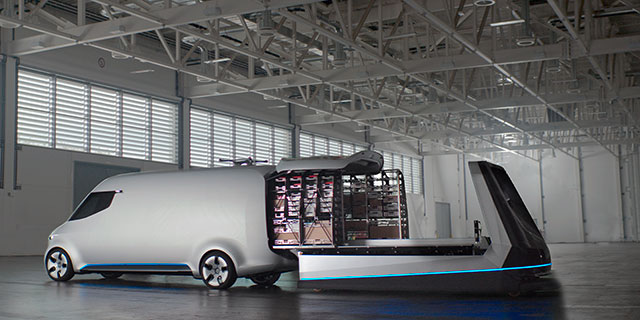 Pod hasłem „Vany i roboty” zaprezentowano niedawno kolejny pionierski projekt dostarczania towarów. We współpracy ze Starship Technologies – start-upem, który zaprojektował innowacyjnego dostawczego robota – samochód dostawczy zmienia się w mobilny magazyn i centrum dystrybucji dla zautomatyzowanych dostaw do końcowego odbiorcy. Samochód pełni podstawową rolę w nowym systemie dostarczania towarów, łączącym wysoki zasięg z niskimi kosztami infrastruktury. System oblicza zoptymalizowaną trasę samochodu z uwzględnieniem postojów na wypuszczenie załadowanych robotów i zabranie tych już rozładowanych. Załadowane roboty opuszczają samochód w określonym miejscu, autonomicznie dostarczają towar do miejsca docelowego i samoczynnie wracają do auta – ich mobilnego centrum dyspozycji – na jednym z kolejnych przystanków. Długofalowa wizja tej koncepcji, zwana „Statkiem matką”, zakłada stworzenie floty robotów autonomicznie koordynujących swoje trasy z samochodami dostawczymi. Także ich załadunek miałby odbywać się automatycznie.
