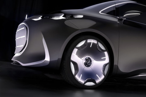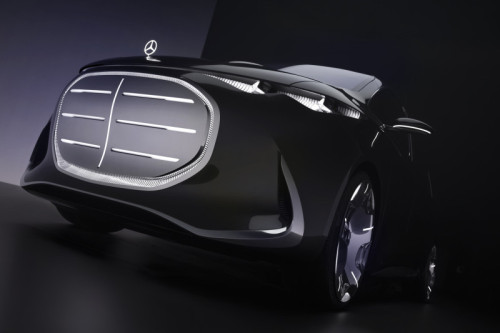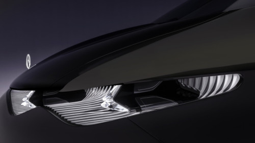 Mocny przód charakteryzuje się nową osłoną chromowanego grilla. Posiada trzy poziome, podświetlane, szklane żaluzje. Linia prawie 200 punktów świetlnych otacza również jego chromowaną ramę. W wąskiej szczelinie nadwozia pod maską znajduje się około 190 podświetlanych pionowych żaluzji, stanowiących oprawę dla reflektorów przednich, które mają kształt trójramiennej gwiazdy Mercedesa. Gdy pasażerowie zbliżają się do Vision V, żaluzje emitują powitalny dynamiczny i artystyczny pokaz świetlny. Dominantą jest jasno oświetlona gwiazda Mercedesa na masce. Elementy świetlne pod reflektorami pełnią również funkcję kierunkowskazów.