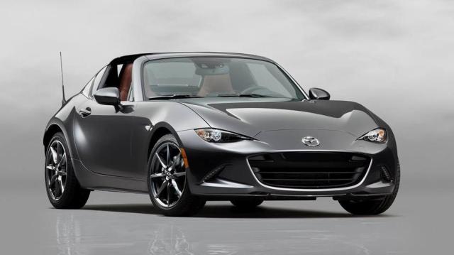 Podczas salonu samochodowego w Nowym Jorku zaprezentowana została po raz pierwszy Mazda MX-5 RF (“retractable fastback”) – wersja ze składanym, sztywnym dachem. Nowa odsłona kultowego roadstera Mazdy – w nowym kolorze – Machine Grey, który zaprojektowano dla modeli w stylu KODO. Samochód wyróżnia się takimi samymi kompaktowymi wymiarami jak wersja z miękkim dachem, zachowując identyczną długość i szerokość całkowitą oraz rozstaw osi (zmianie o 5 mm uległa jedynie wysokość całkowita). Szczegółowe badania doprowadziły do opracowania konstrukcji dachowej, która w połączeniu ze składanym tylnym oknem, zapewnia ekscytujące doznania z jazdy. Jednocześnie, kabina zdaje się otulać podróżnych, zapewniając wysokie poczucie bezpieczeństwa nawet podczas dynamicznej jazdy ze złożonym dachem.