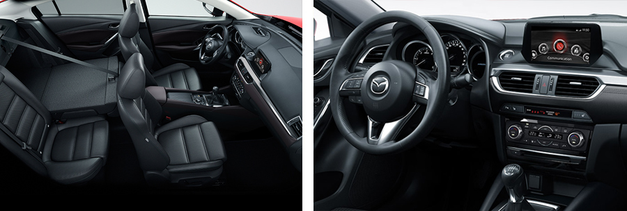 Mazda 6, wprowadzona do sprzedaży w 2012 r., odniosła globalny sukces, a złożyły się na niego przyciągający uwagę motyw stylizacji KODO – Dusza Ruchu oraz Technologia SKYACTIV, zapewniająca właściwą równowagę pomiędzy przyjemnością jazdy, bezpieczeństwem i przyjaznością dla środowiska. Mazda dołożyła wielkich starań, aby osiągnąć we wszystkich aspektach nową skalę dojrzałości. Oprócz nowatorskiego projektu wnętrza, Mazda 6 zyskuje dodatkowo dzięki atrakcyjnemu wyglądowi zewnętrznemu, funkcjonalności, komfortowi oraz bezpieczeństwu. Formy konsoli wskaźników za kierownicą oraz konsoli środkowej składają się na nowy, świeży wygląd wnętrza. Łączy ono koncepcję kokpitu zorientowanego na kierowcy, uwzględniającą ergonomię unikalnego, stosowanego przez Mazdę wyświetlacza centralnego, z przestronnym otoczeniem dla pasażera z przodu. Szczególną uwagę zwrócono także na zmniejszenie odstępów pomiędzy poszczególnymi elementami w celu osiągnięcia wrażenia jednolitości i spójności kabiny.