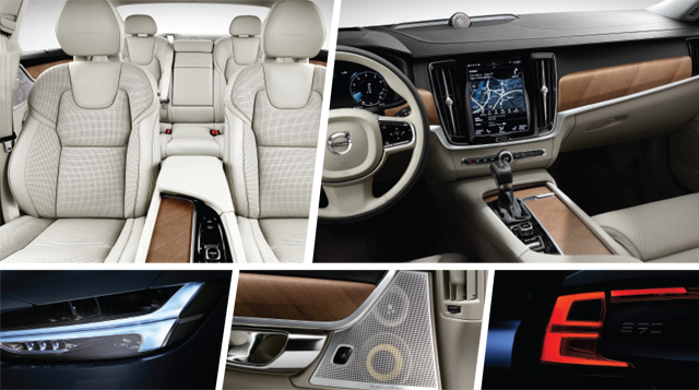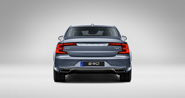 Nowe Volvo S90 powstało w ramach nowej linii stylistycznej, za którą odpowiada Thomas Ingenlath. Zastosowanie nowej płyty podłogowej SPA dało projektantom dużą swobodę w kształtowaniu linii i proporcji nadwozia. Bryła auta ma ładne proporcje i osadzona jest na dużych kołach. Dostępne są rozmiary od 17 aż do 21 cali. Przednie światła w technologii LED mają charakterystyczny kształt młota Thora, znany z modelu XC90. Tylne lampy nawiązują do tych, jakie zastosowano w Concept Coupe. We wnętrzu panuje minimalistyczna elegancja znana z flagowego SUV-a. Większość funkcji wywołuje się za pomocą pionowego, 9-calowego ekranu dotykowego, który powstał przy współpracy z firmą Apple. Cechą odróżniającą S90 od XC90 są pionowo umieszczone szczeliny nawiewu, po obu stronach panelu dotykowego. Inaczej poprowadzono listwy ozdobne i przeprojektowano system nagłośnienia Bowers&Wilkins pod kątem kabiny S90. Nowa limuzyna jest o ponad 11 cm dłuższa od modelu S80, mierząc 496 cm długości. Eleganckie proporcje nadwozia to także zasługa dużej szerokości wynoszącej 202 cm i nisko poprowadzonej linii dachu. Wysokość auta wynosi 144 cm.
