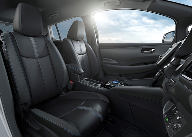 Wnętrze nowego Nissana LEAF zostało gruntownie przeprojektowane. Jest skoncentrowane na kierowcy, a przemyślane zagospodarowanie przestrzeni zapewnia optymalną funkcjonalność. Przedni panel w formie „szybującego skrzydła” oraz intensywnie niebieskie przeszycia na fotelach, desce rozdzielczej i kierownicy sprzyjają relaksowi i podkreślają minimalistyczną estetykę. Na nowym kolorowym ekranie (TFT) o przekątnej 7 cali wyświetlane są najważniejsze informacje, w tym powiadomienia z systemu Safety Shield, informacje o zapasie mocy oraz komunikaty z systemów audio i nawigacji. W celu zapewnienia rozszerzonej łączności samochód wyposażono w interfejsy Apple CarPlay i Android Auto (w zależności od rynku).