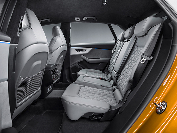Audi Q8, jak żaden inny SUV spod znaku czterech pierścieni, emanuje sportową dynamiką i prestiżem. Mający 4,99 m długości, 2 m szerokości i 1,71 m wysokości SUV coupé, jest szerszy, ale jednocześnie krótszy i niższy niż siostrzane Audi Q7. Prawie 3 metry rozstawu osi sprawiają, że samochód ten oferuje przestronne wnętrze, bijące na głowę bezpośrednich konkurentów pod względem najważniejszych wymiarów, w tym długości wnętrza i miejsca nad głową. Na życzenie dostępny jest system trzech przesuwanych wzdłuż foteli z tyłu. Ze złożonymi oparciami z tyłu, przestrzeń bagażowa kryjąca się pod potężną klapą bagażnika ma 1755 litrów.