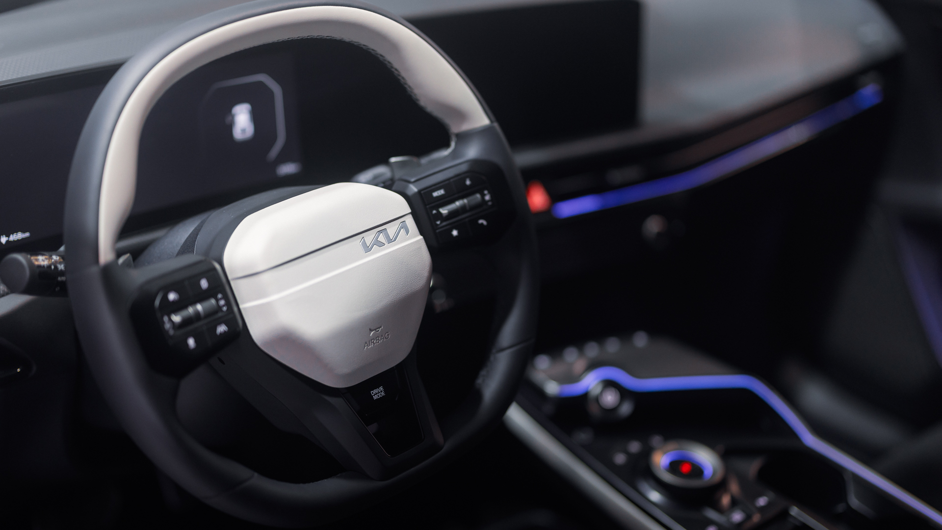 Tryby jazdy można wybrać za pomocą przycisku na kierownicy. Tryby Eco, Normal, Sport i My Drive mogą być łatwo przełączane przez kierowcę w zależności od warunków lub pożądanego stylu jazdy, a tłumienie wstrząsów, układ kierowniczy i wyczucie hamulców są zoptymalizowane dla każdego trybu. Seledynowe przyciski GT na kierownicy włączają tryb GT, aby uwolnić pełny potencjał wydajności EV6 GT.