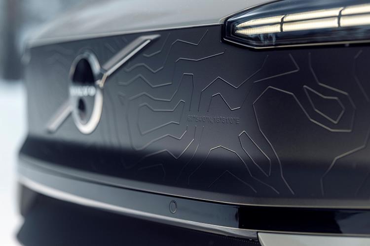 Choć jego głównym środowiskiem jest jazda w trybie miejskim, EX30 Cross Country został również stworzony, aby radzić sobie w warunkach terenowych – a przy tym, wyglądać świetnie przy każdej okazji. Osłona przednia oraz klapa bagażnika otrzymały specjalny, ciemny kolor, a przód wyróżnia unikalna grafika przedstawiająca topografię pasma górskiego Kebnekaise w Arktycznej Szwecji, które jest częstą inspiracją dla projektantów Volvo. Solidne osłony podwozia z przodu i z tyłu oraz poszerzone nadkola nadają sylwetce bardziej terenowy wygląd i podkreślają to, że ten samochód jest gotowy na każdą przygodę.