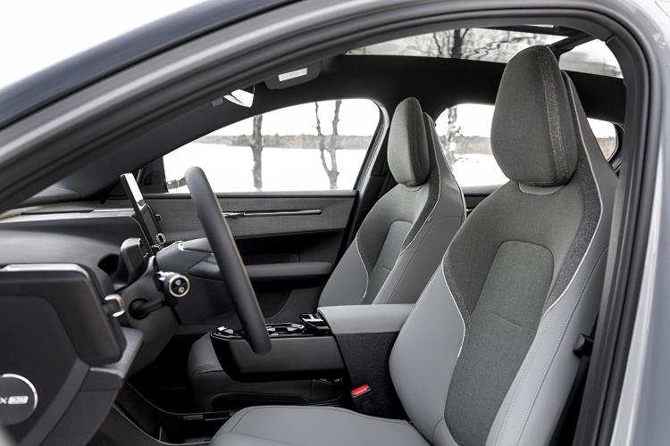 Wnętrze EX30 Cross Country jest niezwykle funkcjonalne i zawiera wszystkie inteligentne technologie, przemyślane schowki i nowoczesne rozwiązania, które sprawiły, że standardowy EX30 od razu stał się hitem. Drzwi wyposażono w pojemne schowki, ponieważ usunięto głośniki, które zostały zintegrowane z soundbarem na desce rozdzielczej.