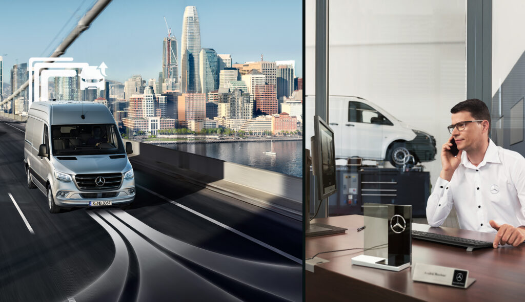 Dzięki Van Uptime Monitor, Mercedes-Benz Vans pomaga swoim klientom zarządzać technicznymi problemami pojazdów, pojawiającymi się w wyniku intensywnego codziennego użytkowania, w czasie rzeczywistym i ostrzegać ich o potencjalnej usterce, zanim do niej dojdzie. Van Uptime Monitor inteligentnie łączy pojazdy z osobami zarządzającymi nimi oraz partnerami serwisowymi Mercedes-Benz. Pełną przejrzystość stanu technicznego pojazdu lub całej floty zapewnia zawsze aktualna lista pojazdów widniejąca na stronie Mercedes-Benz na profilu firmowym klienta. Różne podstawowe dane techniczne: takie jak poziom oleju, ciśnienie w oponach lub konieczność wyważenia przednich kół, oraz wszystkie zdiagnozowane usterki tudzież niezbędne prace eksploatacyjne o różnym stopniu pilności prezentowane są w zrozumiały sposób i udostępniane w czasie rzeczywistym. Pomaga to efektywnie planować przeglądy, unikać nieplanowanych przestojów, a w przypadku problemów przejść bezpośrednio do ich rozwiązania rozpoczynając od umówienia online wizyty w wybranym serwisie Mercedes-Benz.