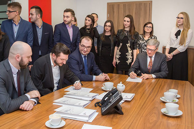 – Cieszę się, że współpraca pomiędzy uczelnią a kancelarią przybrała postać formalną i że kancelaria jako instytucja stosująca prawo chce korzystać z pomocy instytucji teoretycznej. Nasza uczelnia, a więc pracownicy i studenci, też chce podpierać się wiedzą praktyczną – dodał prof. Jerzy Posłuszny. – Jedną z płaszczyzn współpracy będzie możliwość uczestniczenia pracowników kancelarii w seminariach doktoranckich. Osoby zdradzające zainteresowania naukowe zostaną przyjęte na seminarium doktoranckie, będziemy też zapraszać pracowników kancelarii na zajęcia dydaktyczne na uczelnię.