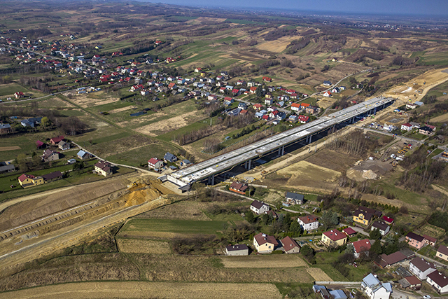 Konsorcjum firm Eurovia Polska S.A. i Warbud S.A. zakończyło już wszystkie roboty ziemne na dojeździe do estakady E1. Przy ul. Dębickiej w Rzeszowie usunięto wcześniej stanowisko do nasuwania konstrukcji estakady. Trwają prace przy rozbiórce nasypów przeciążeniowych na dojazdach do wiaduktów. Budowany jest nasyp na węźle Rzeszów Południe w Racławówce i prowadzone wykopy w obrębie ul. Słoneczny Stok w. Rzeszowie oraz na końcu odcinka drogi S19 w Racławówce. Kiedy zostaną te roboty zakończone, budowlańcy będą kontynuować wykonywanie warstw konstrukcyjnych nawierzchni na „ekspresówce”. Równolegle wykonywane jest odwodnienie drogi – rowy, przepusty, kanalizacja deszczowa i zbiorniki.