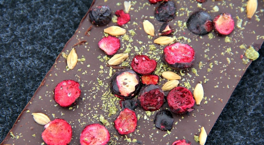 Druga propozycja z naszego regionu to czekolada z Bieszczadzkiej Wytwórni Piwa Ursa Maior, a konkretnie Andromeda z Kolekcji galaktycznej, z czarną porzeczką, słodem i chmielem. Ta niezwykła kompozycja została skomponowana przez Agnieszkę Łopatę, założycielkę Wytwórni, Andrzeja Czecha i cholocatiera Mirosława Pelczara.