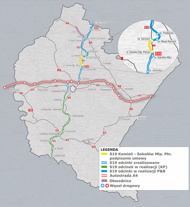 W piątek, 21 grudnia Generalna Dyrekcja Dróg Krajowych i Autostrad podpisała umowę na projekt i budowę ostatniego, 8-kilometrowego odcinka drogi ekspresowej S19 na Podkarpaciu, od węzła Kamień do węzła Sokołów Małopolski Północ. Oznacza to, że szlak Via Carpatia od Lublina do Sokołowa Małopolskiego o dł. ponad 131 km jest w realizacji.