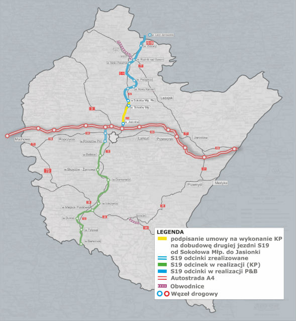 W środę, 15 maja podpisana została umowa na wykonanie koncepcji programowej dla drugiej jezdni drogi S19 od Sokołowa Młp. do Jasionki. Za niemal 3 mln zł firma Mosty Katowice zobowiązała się zrobić to w ciągu 18 miesięcy. Koncepcja jest potrzebna do przygotowania projektu i rozpoczęcia budowy.