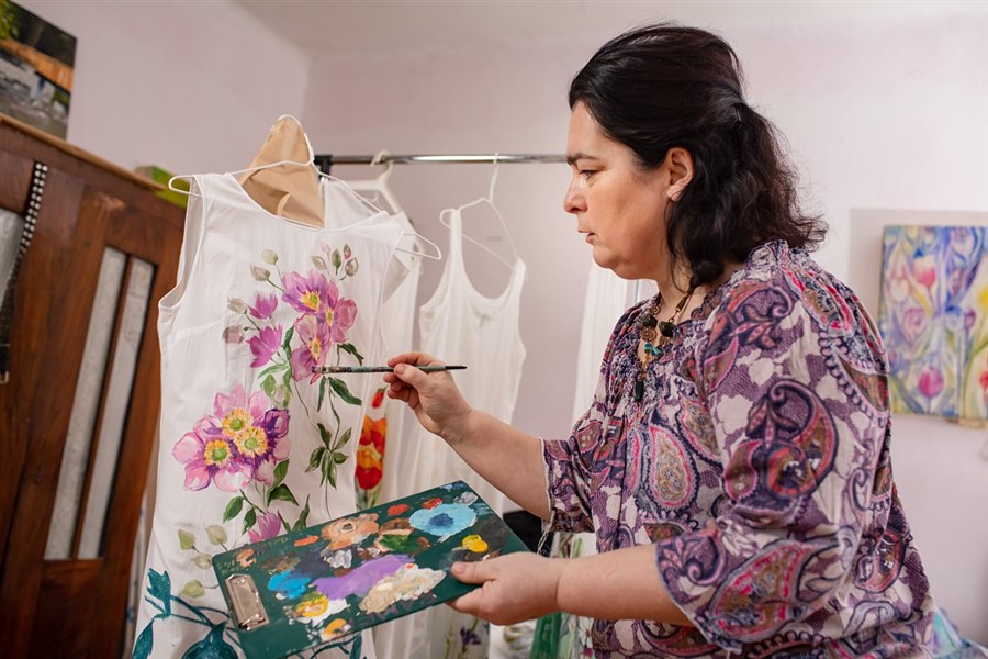 Artystka Dorota Zielińska chciałaby otworzyć pracownię tkaniny ręcznie malowanej. Fot. Tadeusz Poźniak