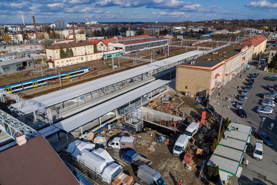 W tym samym czasie wykonawca ruszył z kolejnymi etapami budowy obiektu, który docelowo zostanie połączony z trzecim peronem. Przy podziemnym przejściu pracuje codziennie kilkadziesiąt osób, korzystających z palownic, dźwigów i wiertnic. Do budowy kolejarze używają ponad 3 tys. metrów sześciennych betonu i 267 kilometrów stali – prawie tyle samo, ile liczy trasa kolejowa z Przemyśla do Krakowa. Całkowita długość przejścia sięgnie 137 metrów, a wysokość – 2,8 metra. Co do szerokości, ta planowana jest od 10 do 6 metrów. Do tego dochodzi jeszcze wyposażenie: schody, schody ruchome oraz pięć wind z myślą o osobach z ograniczonymi możliwościami poruszania się.