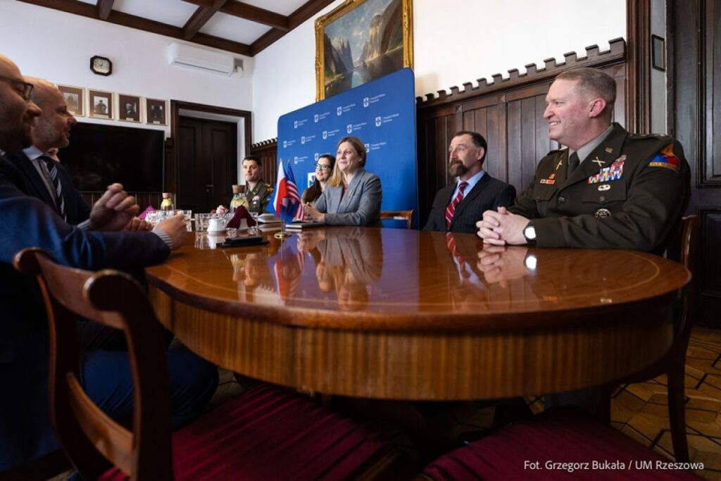 Foto: Zdjęcie ze spotkania prezydenta Rzeszowa Konrada Fijołka z dowódcą zamiejscowej armii amerykańskiej pułkownikiem Jaysonem Morganem, fot. Grzegorz Bukała, Urząd Miasta Rzeszowa