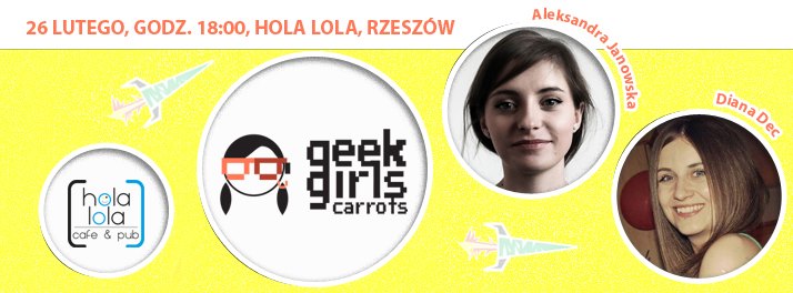 W środę, 26 lutego, odbędzie się kolejne spotkanie kobiet zakochanych w nowych technologiach – Geek Girls Carrots. W klubokawiarni Hola Lola będzie można posłuchać wystąpień bardzo uzdolnionych prelegentek: graficzki – Aleksandry Janowskiej oraz testerki oprogramowania – Diany Dec.
