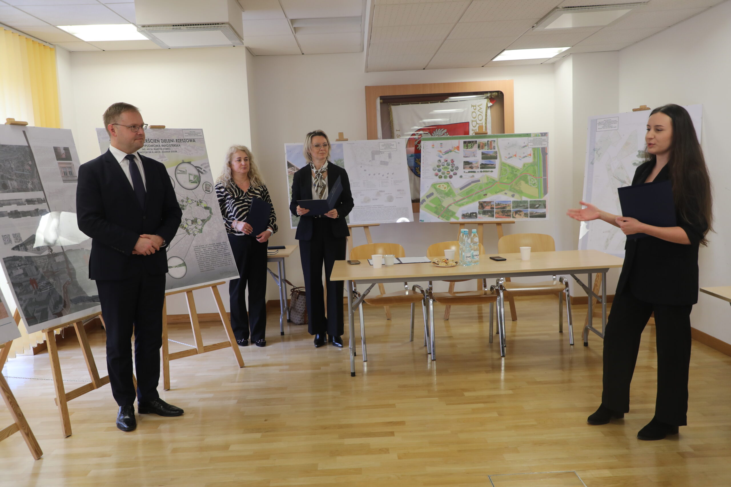 Dla nas jako samorządu województwa, dla mnie osobiście jako wicemarszałka nadzorującego departament rozwoju regionalnego to bardzo miłe wydarzenie. Cieszę się, że Państwo w swoich pracach naukowych, badawczych podjęliście temat związany z potencjałem rozwojowym przestrzeni województwa podkarpackiego. Jako województwo podkarpackie mamy zdefiniowane 4 inteligentne specjalizacje, jedną z tych specjalizacji jest jakość życia. I bez wątpienia ład przestrzenny, harmonia miejsc w których mieszkamy, w których na co dzień jesteśmy wpływa na tę jakość. Stąd Państwa tematyka badawcza podjęta w pracach magisterskich, inżynierskich jest niezwykle cenna dla samorządu województwa podkarpackiego i chcielibyśmy zrobić prezentacje tych prac w Podkarpackim Centrum Nauki Łukasiewicz oraz abyście Państwo mogli zrobić makiety wynikające z tych opracowań w Podkarpackim Centrum Innowacji. Życzę dalszych sukcesów dla wszystkich Państwa w pracy zawodowej i naukowej – powiedział Karol Ożóg.