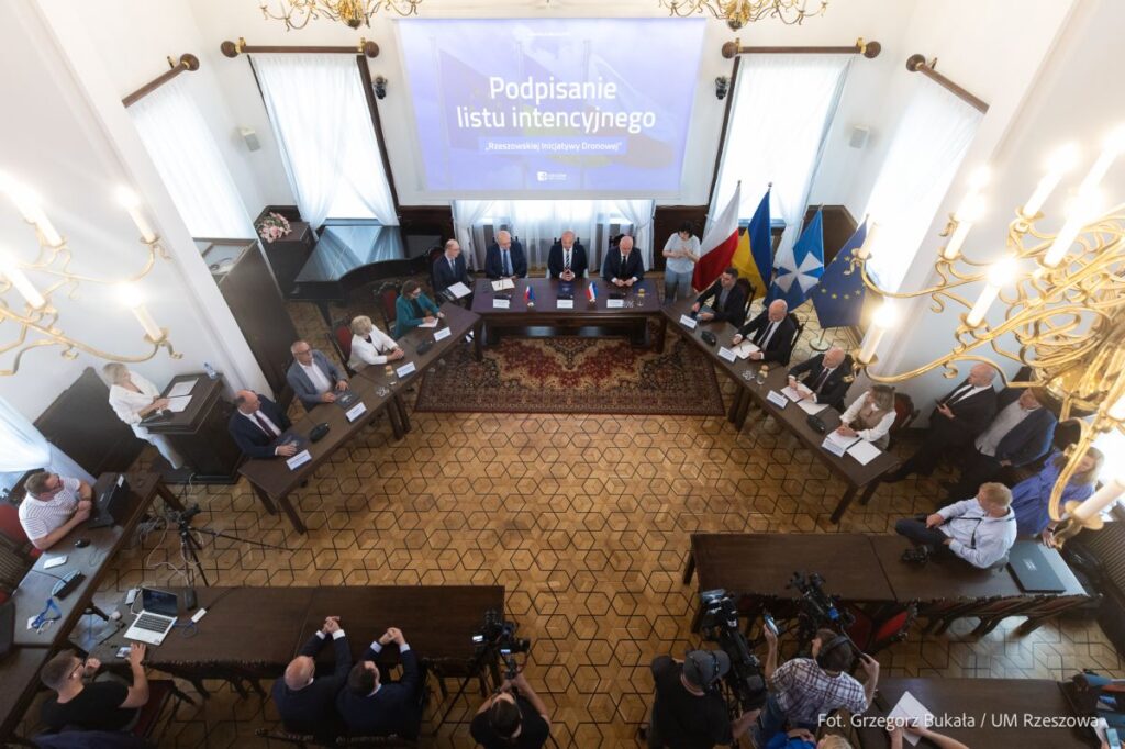 Foto: zdjęcie z podpisania listu intencyjnego na rzecz utworzenia Rzeszowskiej Inicjatywy Dronowej, fot. Grzegorz Bukała, Urząd Miasta Rzeszowa