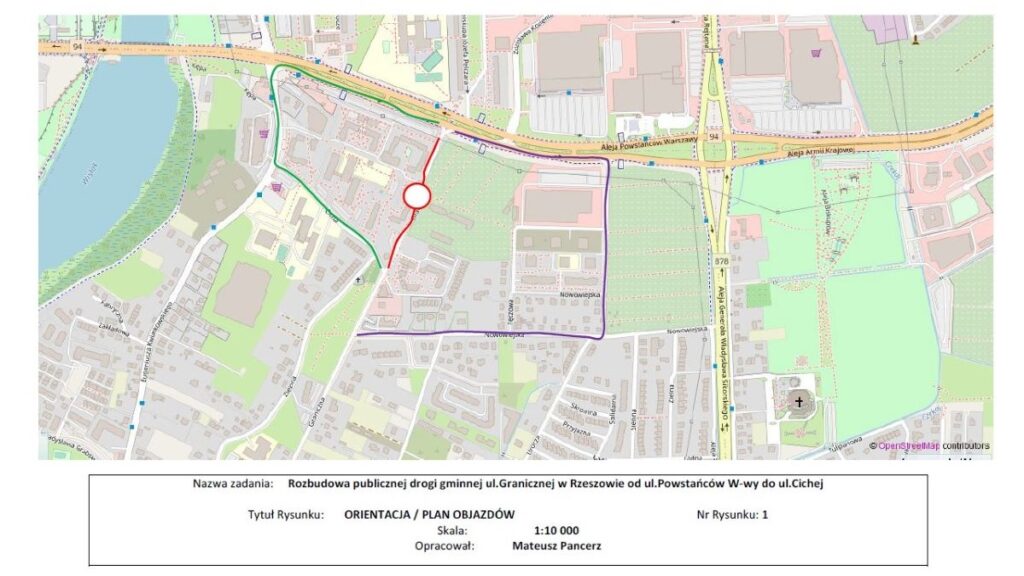 Miejski Zarząd Dróg w Rzeszowie informuje, że w związku z przebudową ulicy Granicznej od dnia 10.03.2025 r. zostanie zamknięty odcinek ulicy Granicznej na odcinku ok. 200 m od ul. Cichej w kierunku Al. Powstańców Warszawy – I Etap, zgodnie z projektem tymczasowej organizacji ruchu. Planowany termin zamknięcia jezdni dla niniejszego etapu do 30.04.2025 r.