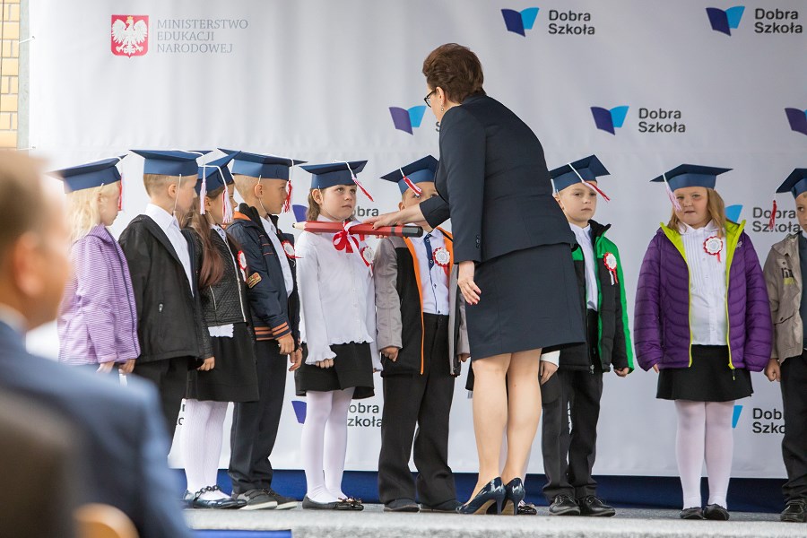 – Polska szkoła powinna być nowoczesna i otwarta, ale także czerpać z tradycji i kultury polskiego narodu – mówiła pani premier. – Dobra szkoła ma być przede wszystkim otwarta na uczniów, rodziców, nauczycieli. Ma budować wspólnotę: szkolną, lokalną i narodową.