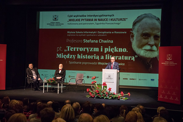 Wykład prof. Chwina odbył się w poniedziałek, 19 lutego o godz. 17, w Teatrze im. Wandy Siemaszkowej w Rzeszowie. Spotkanie poprowadził Wojciech Bonowicz – redaktor i felietonista "Tygodnika Powszechnego". Wykład jest organizowany w ramach II edycji cyklu wykładów popularnonaukowych „Wielkie pytania w nauce i kulturze", realizowanego przez Wyższą Szkołę Informatyki i Zarządzania, pod patronatem "Tygodnika Powszechnego".