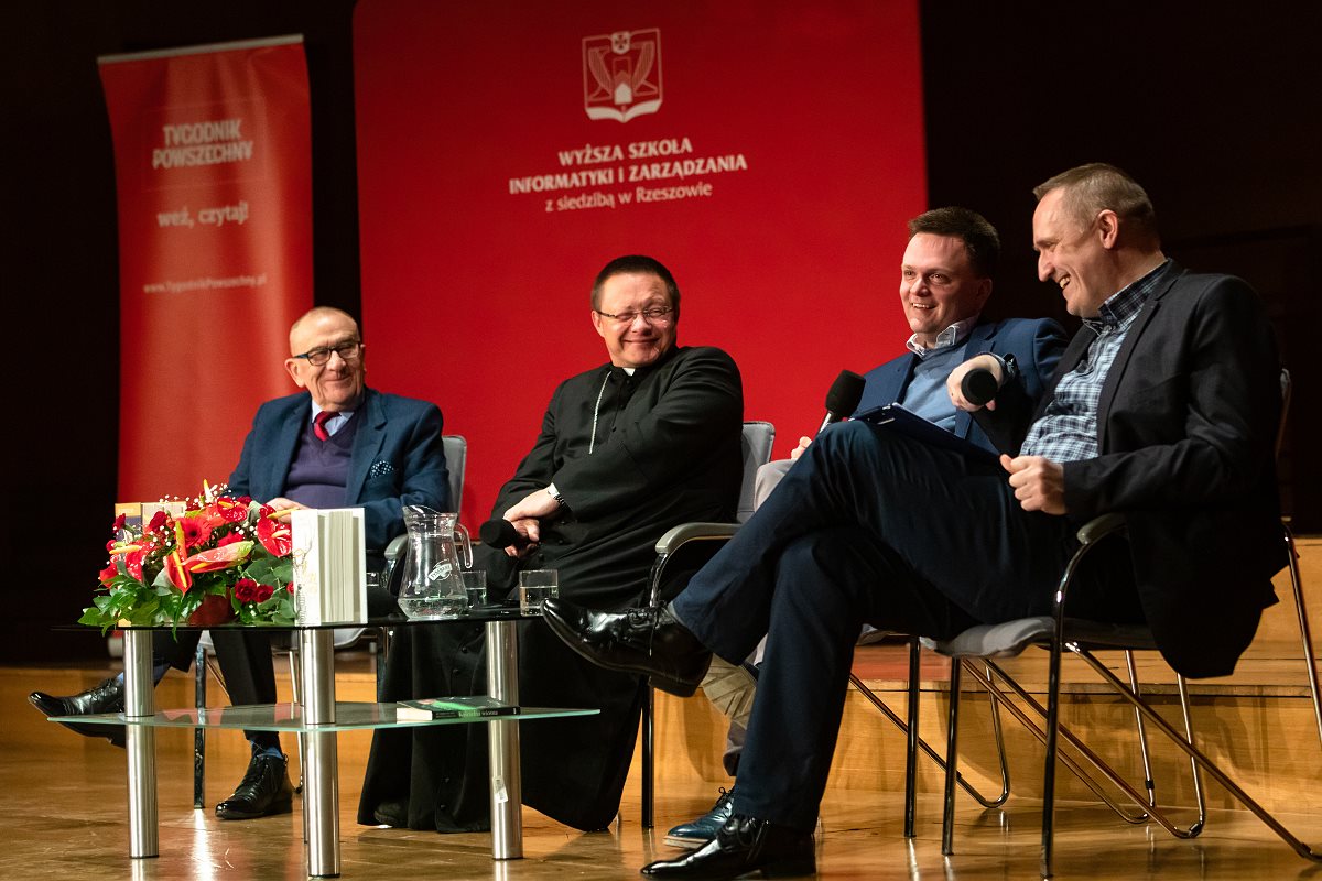 Otwarte wykłady i debaty organizowane od trzech lat przez Wyższą Szkołę Informatyki i Zarządzania w Rzeszowie zawsze cieszą się dużym zainteresowaniem. Spotkanie z abp. Grzegorzem Rysiem i dziennikarzem Szymonem Hołownią będzie jednak należało do rekordowych pod względem frekwencji. Publiczność zajęła nie tylko dużą salę koncertową Filharmonii Podkarpackiej, ale również kameralną, w której transmitowano to, co działo się na głównej scenie. Tematem były problemy współczesnego chrześcijaństwa, a spotkanie otwarło nowy cykl debat pn. „W labiryncie świata”, których organizacji wraz z rzeszowską uczelnią podjął się Klasztor Ojców Dominikanów w Rzeszowie, we współpracy z „Tygodnikiem Powszechnym”. Rozmowę poprowadził publicysta tygodnika – Wojciech Bonowicz.