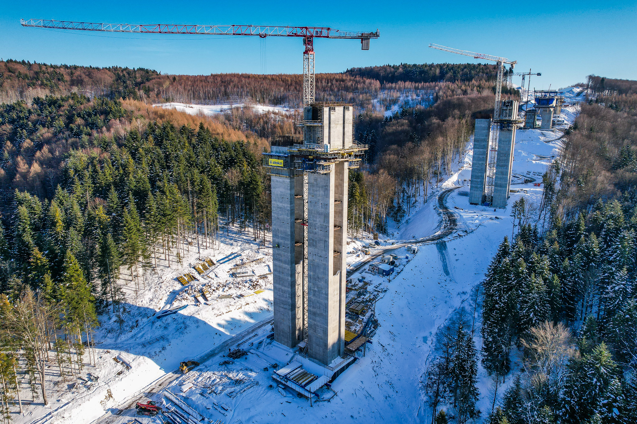 Na sąsiednim odcinku, Babica – Jawornik, warunki pogodowe pozwalają wykonywać roboty drogowe w ograniczonym zakresie, natomiast ekipy mostowe sukcesywnie realizują kolejne etapy robót na obiektach. Zaawansowanie prac mostowych szacowane jest na poziomie ok. 76 proc. W najbardziej imponującym miejscu na budowie, najwyższej powstającej w Polsce estakadzie ES-26, roboty koncentrują się na wykonywaniu zbrojenia, na deskowaniu oraz betonowaniu podpór tej imponującej konstrukcji. Najbardziej zaawansowane są podpory przy przyczółku południowym. Podpory zachodnie są na etapie zbrojenia i deskowania. Przyglądając się powstającej estakadzie można dostrzec też powoli wznoszące się lewe części podpór, które w większości są na etapie zbrojenia, deskowania oraz betonowania. Aktualny stan zaawansowania robót na ES-26 wynosi ok. 51 proc.
