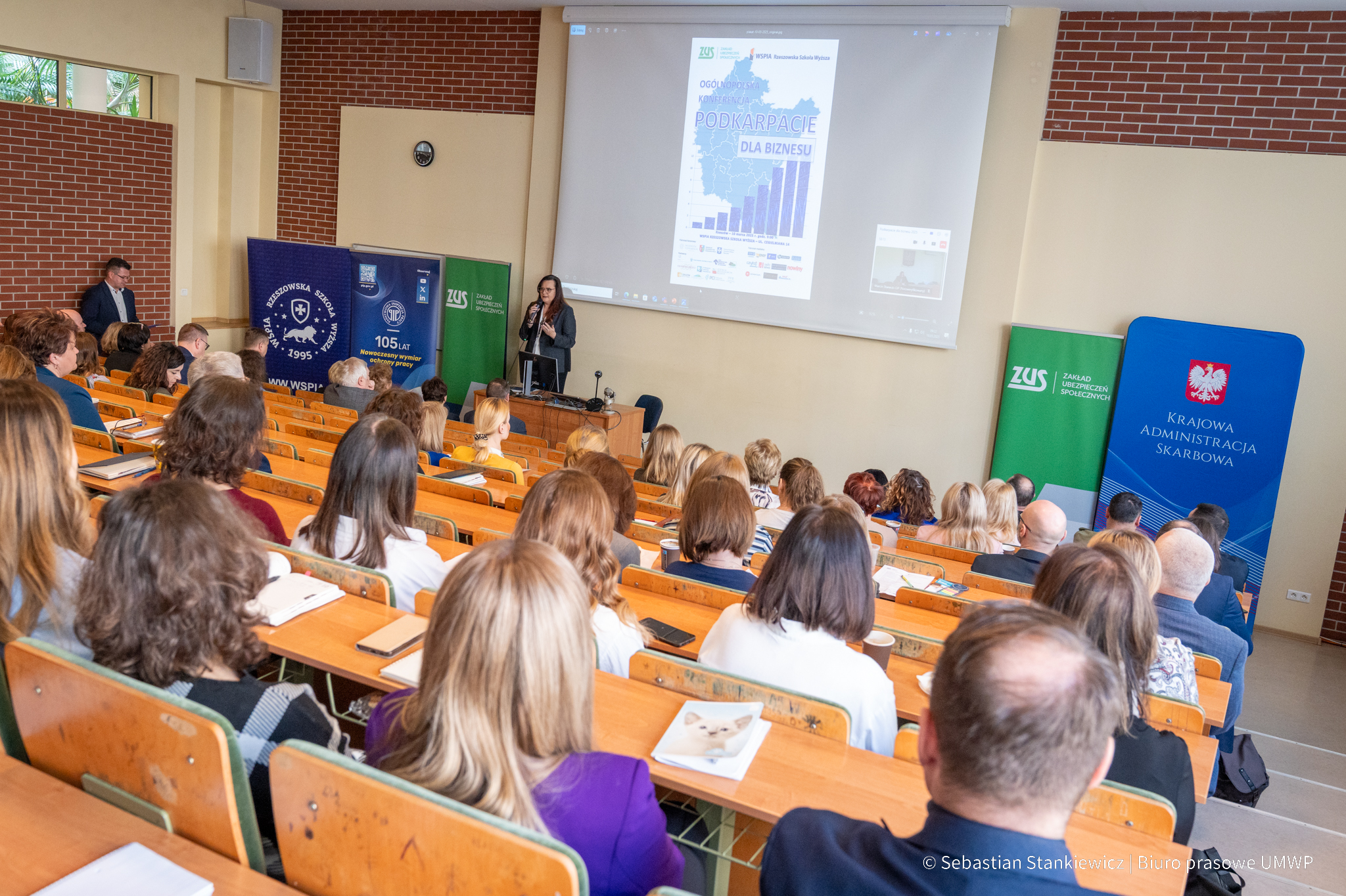 Na kampusie Rzeszowskiej Szkoły Wyższej odbyła się ogólnopolska konferencja „Podkarpacie dla Biznesu”, organizowana przez Zakład Ubezpieczeń Społecznych oraz WSPiA Rzeszów. W debacie uczestniczyli przedsiębiorcy, przedstawiciele administracji publicznej oraz eksperci zajmujący się tematyką biznesową i prawną. Patronat honorowy nad wydarzeniem obął Marszałek Województwa Podkarpackiego Władysław Ortyl, a zarząd województwa podczas konferencji reprezentowała Małgorzata Jarosińska-Jedynak, członek zarządu.
