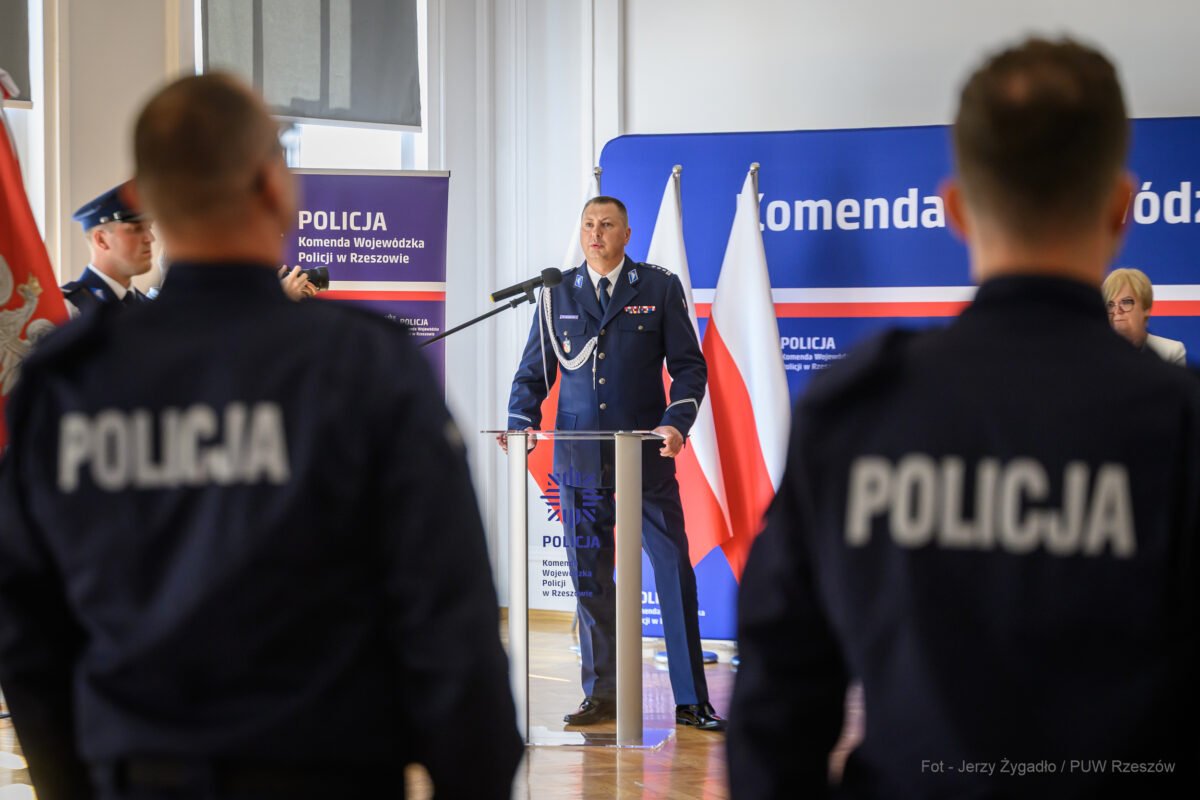 Komendant Wojewódzki Policji w Rzeszowie insp. Andrzej Patrzałek przywitał nowych funkcjonariuszy w szeregach Policji.