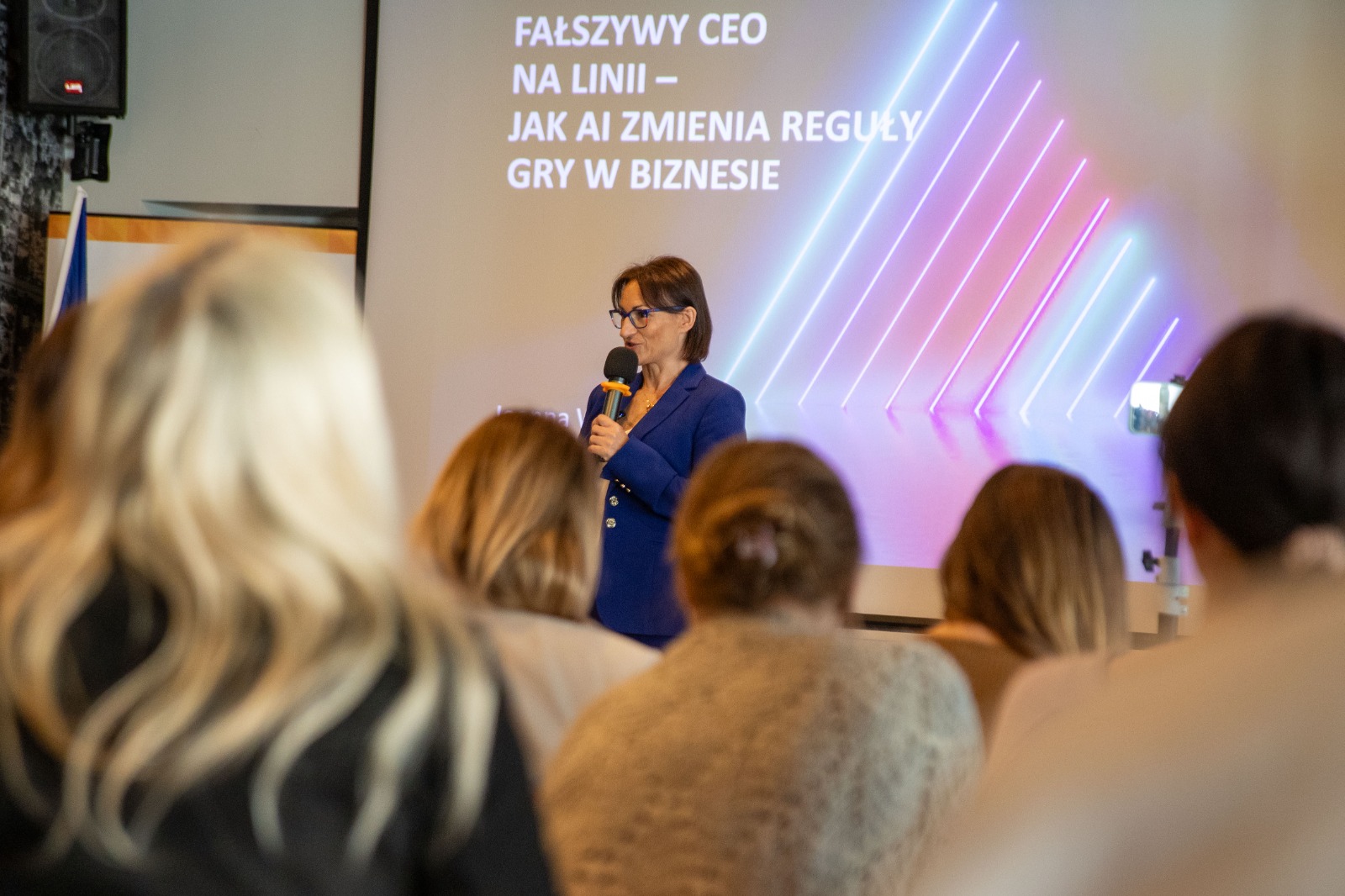 Joanna Wziątek-Ładosz, ekspertka cyberbezpieczeństwa z 15-letnim doświadczeniem, znana jako “Pani od cyber”, otworzyła oczy uczestników na zagrożenia, o których niewiele firm myśli na co dzień. – Wiceprezes przelał pieniądze, bo uwierzył w spotkanie na Teamsach z zarządem. A to były tylko awatary, mówiące głosem członków zarządu – opowiadała o prawdziwym przypadku ataku, który kosztował firmę 20 milionów dolarów. Podczas wykładu pokazała cyfrowego klona siebie, który potrafił prowadzić rozmowę “jej” głosem. – Ten awatar nie kosztował mnie ani złotówki. Ani jednej. I zajęło mi to pięć minut – podkreśliła.