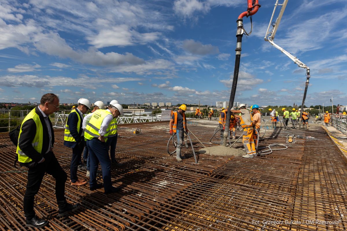 Wisłokostrada to nie tylko budowa samej drogi, ale także kilku dużych obiektów inżynierskich. Jednym z nich jest niedawno oddany do użytku nowy Most Załęski. Kolejnym jest potężna estakada nad torami kolejowymi. Ten obiekt składa się z dwóch niezależnych konstrukcji. Nitka prawa ma długość 270 metrów. Obiekt został zabetonowany w lutym tego roku. Teraz nadszedł czas na nitkę lewą, która ma długość prawie 374 m. Ta operacja ruszyła w poniedziałek o godz. 9. – To zadanie prowadzone jest w trybie ciągłym i potrwa do 80 godzin. Beton na miejsce jest cały czas dowożony przez 30 betonowozów – mówi Konrad Fijołek, Prezydent Rzeszowa, który we wtorek był na budowie Wisłokostrady. Pojazdy do Rzeszowa dojeżdżają z dwóch betoniarni.