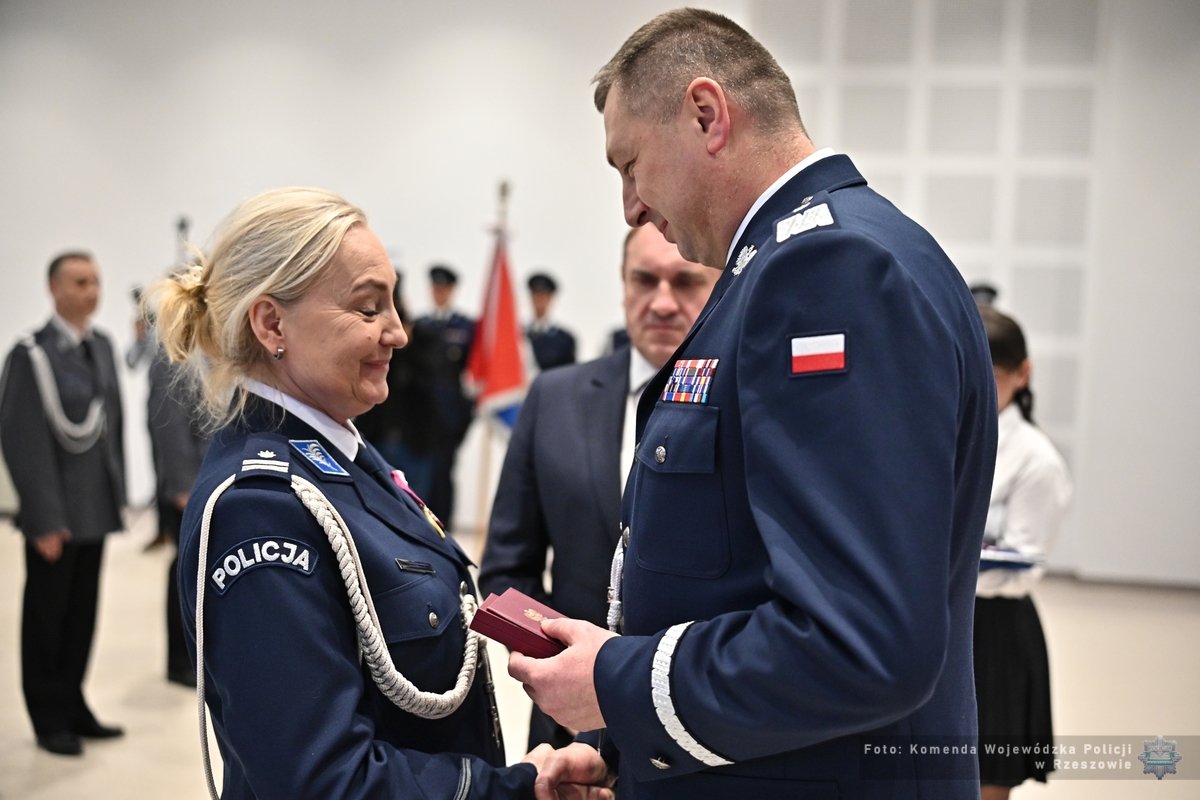 W auli Oddziału Prewencji Policji w Rzeszowie odbyła się uroczysta ceremonia wręczenia odznaczeń państwowych i resortowych oraz ślubowania 29 nowych funkcjonariuszy Policji garnizonu podkarpackiego. W wydarzeniu uczestniczyła Małgorzata Jarosińska-Jedynak, Członek Zarządu Województwa Podkarpackiego.