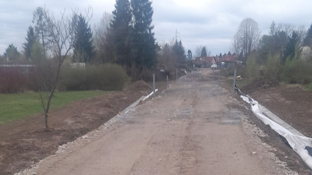 Równolegle Wykonawca wykonuje prace przygotowawcze związane z budową dojazdów technologicznych oraz platform roboczych. Infrastruktura ta umożliwi bezpieczne i sprawne prowadzenie robót związanych z umocnieniem koryta rzeki Strug w postaci grodzic stalowych, a także wykonanie posadowienia projektowanej kładki pieszo-rowerowej na palach.