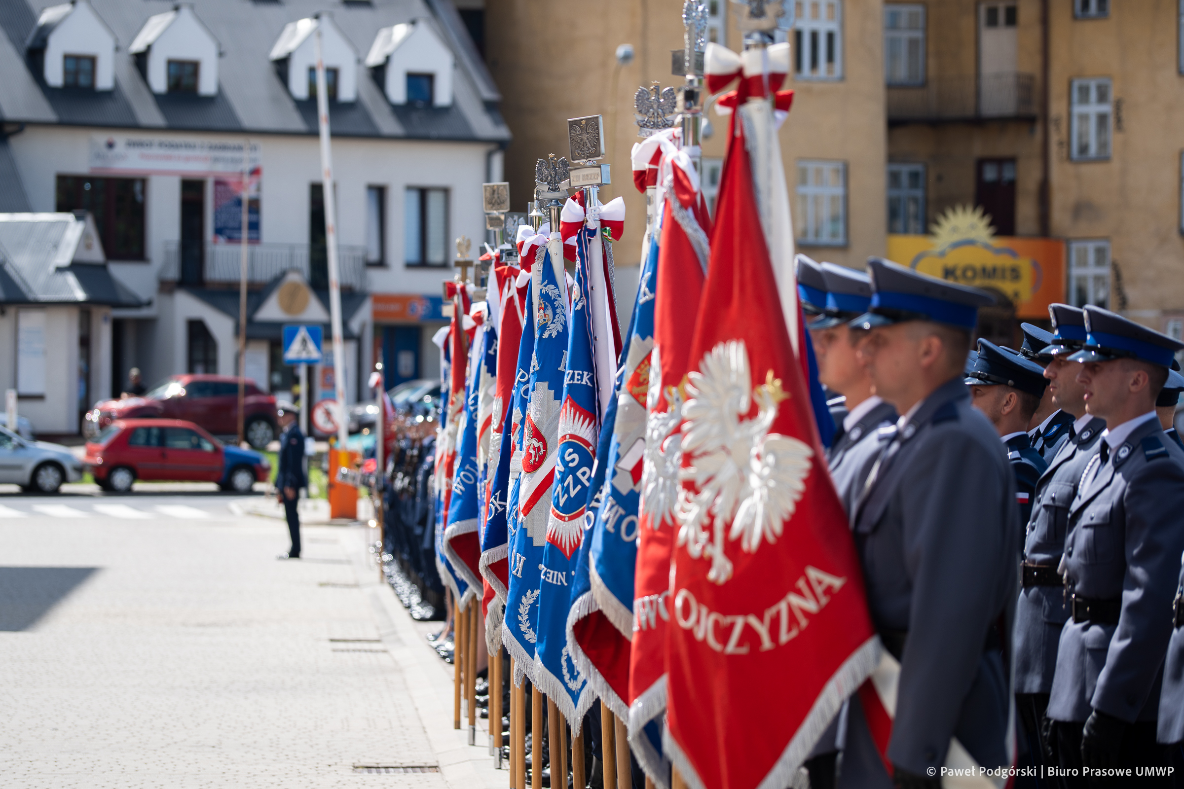 Uroczystości rozpoczęły się od złożenia meldunku przez dowódcę uroczystości, po czym podniesiono flagę państwową i odegrano hymn Rzeczypospolitej Polskiej. Głos zabrał Komendant Wojewódzki Policji w Rzeszowie, inspektor Andrzej Patrzałek, który w swoim wystąpieniu podkreślił, że ostatnie lata stawiają przed Policją ogromne wyzwania, wymagające nie tylko sprawności operacyjnej, ale również empatii i odporności psychicznej. Dziękował funkcjonariuszom za gotowość, zaangażowanie i profesjonalizm w realizacji zadań służbowych.