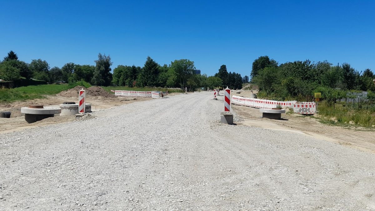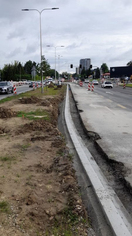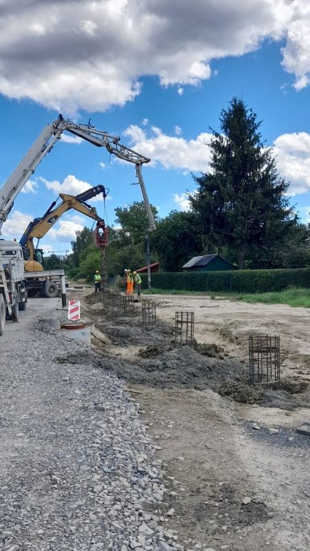 Obecnie trwają prace związane z układaniem krawężników, wykonaniem pali wierconych pod po ekrany akustyczne oraz roboty związane z wykonaniem podbudowy pod chodniki i ścieżki rowerowe.
