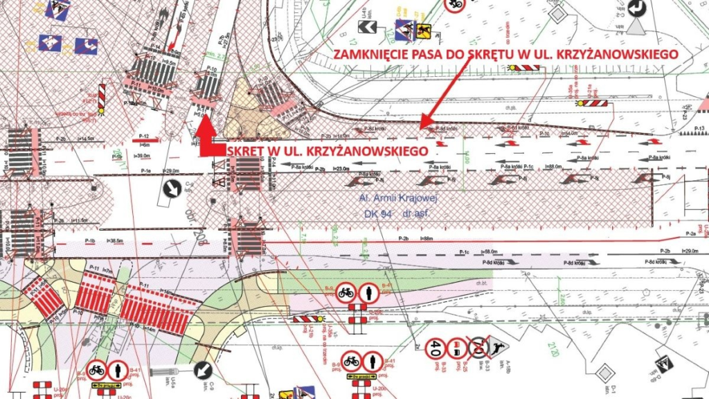Miejski Zarząd Dróg w Rzeszowie informuje, że w związku z budową ul. Krzyżanowskiego w dniu 18.08.2025 r. w obrębie skrzyżowania al. Armii Krajowej z ul. Krzyżanowskiego zostanie wprowadzona kolejna zmiana do istniejącej Tymczasowej Organizacji Ruchu, polegająca na zamknięciu pasa do skrętu w prawo z al. Armii Krajowej w ul. Krzyżanowskiego.