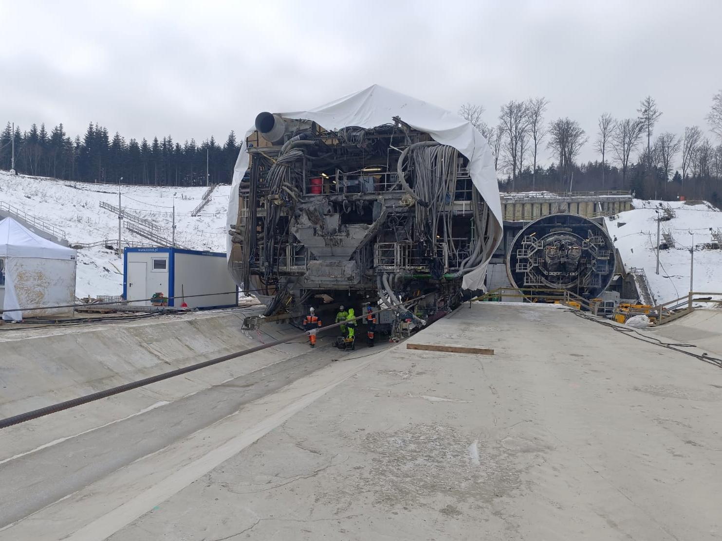 Po przetransportowaniu wszystkich elementów TBM do miejsc parkingowych, co planowane jest do końca lutego br., rozpocznie się szczegółowy przegląd maszyny, m.in. łożyska głównego, przenośnika ślimakowego oraz samej głowicy skrawającej i osłony tylnej. Po ich zakończeniu tarcza TBM oraz zaplecze zostanie ustawione w kołysce startowej na portalu północnym a maszyna będzie przygotowywana do rozpoczęcia drążenia drugiej nawy tunelu dla jezdni prawej.