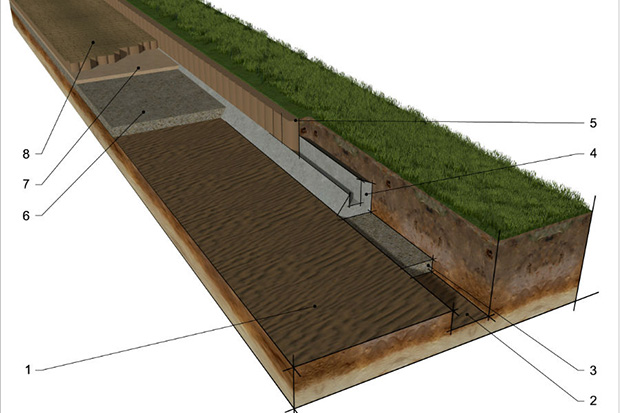 Pozostała więc kwestia ostatnia, czyli montaż wybranych elementów obrzeżowych. W tym celu najpierw wykonujemy wykop o szerokości odpowiadającej planowanej szerokości fundamentu. Z reguły powinna to być grubość elementu, plus po 10 centymetrów z każdej strony. Zasada ta dotyczy głównie krawężników, palisad i kostki brukowej, w wypadku gazonów i koryt wystarczająca jest szerokość elementu.