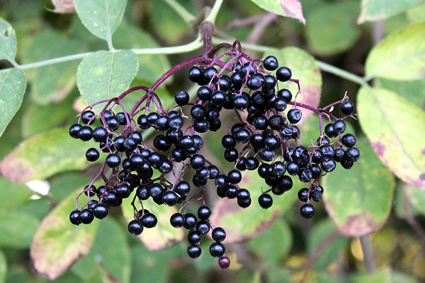 Owoce zebrane w baldachy są czarne i mają czerwony sok. Zawierają m.in. antocyjany (rodzaj flawonoidów obecnych we wszystkich owocach o ciemnogranatowej barwie). Chronią układ krwionośny, oczyszczają organizm, działają lekko przeczyszczająco i przeciwbólowo. Fot.Pixabay