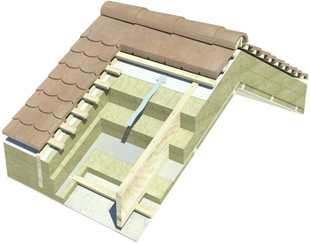 Z uwagi na złożoną naturę problemu, niezbędne staje się zastosowanie izolacji charakteryzującej się niską przewodnością cieplną, pozwalającej zachować współczynnik przenikania ciepła przegrody Umax ≤ 0,18 (W/m2K) i potrafiącej skutecznie zabezpieczyć elementy więźby dachowej. Pod tym względem doskonale sprawdzają się sprężyste płyty z wełny kamiennej o niskiej gęstości oraz zaburzonej strukturze włókien. Taka izolacja łatwo wpasowuje się pomiędzy elementy konstrukcji i wypełnia puste przestrzenie ale i zwiększa poziom ochrony drewnianej więźby przed działaniem ognia. Oczywiście, wiele zależy także od grubości materiału izolacyjnego.