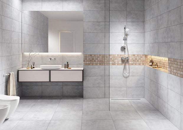 Mozaika w łazience to już niemal klasyka. Zdobi zarówno ściany, jak i podłogi, pomagając wydzielić poszczególne strefy. Świetnie sprawdzi się użyta zarówno w całym pomieszczeniu, jak i na wybranym fragmencie ściany, towarzysząc kontrastowym wielkoformatowym płytkom. Projektując salon kąpielowy oparty na mozaice, warto sięgnąć po zróżnicowaną paletę kolorów. Monochromatyczne białe wnętrze z pewnością ożywi ścienny dekor w kilku odcieniach szarości. Tę samą płytkę możemy także wykorzystać na większej płaszczyźnie, jako wytworne, pełne elegancji tło dla wolnostojącej wanny w nowoczesnym designie.