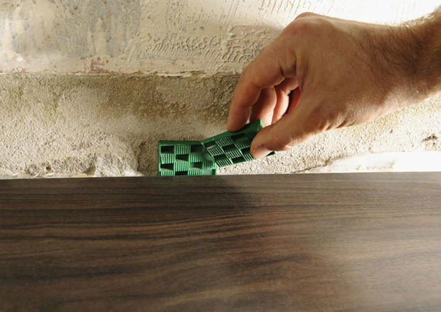 Pierwszy położony rząd powinniśmy zabezpieczyć przed przesunięciami za pomocą rozpórek bądź klinów dystansowych. Fot. Wineo